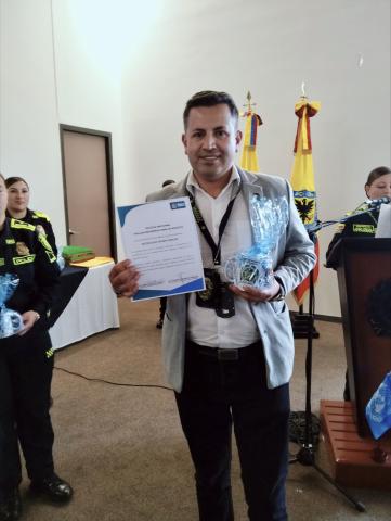 Durante la ceremonia, el Brigadier General Giovanni Cristancho, comandante de la Policía Metropolitana de Bogotá, y la Teniente Coronel Gerly Mesa, jefe de Derechos Humanos de la institución, entregaron distinciones honoríficas a profesionales y líderes sociales que han contribuido significativamente a la promoción y defensa de los derechos humanos en el país.